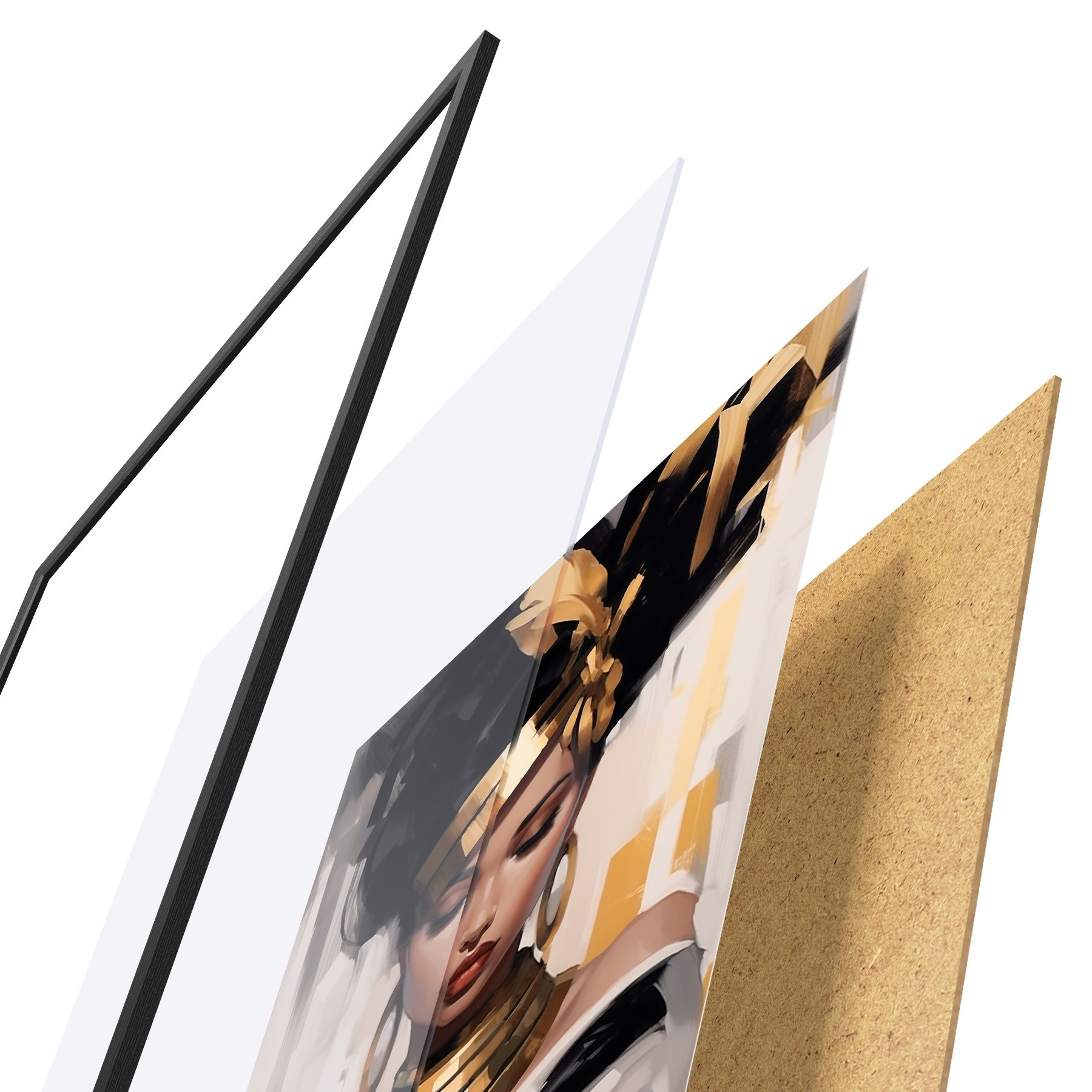 Il poster è composto da cornice, plexiglass, immagine stampata e supporto in truciolato. Il poster può essere immediatamente appeso alla parete grazie ai supporti sul retro.