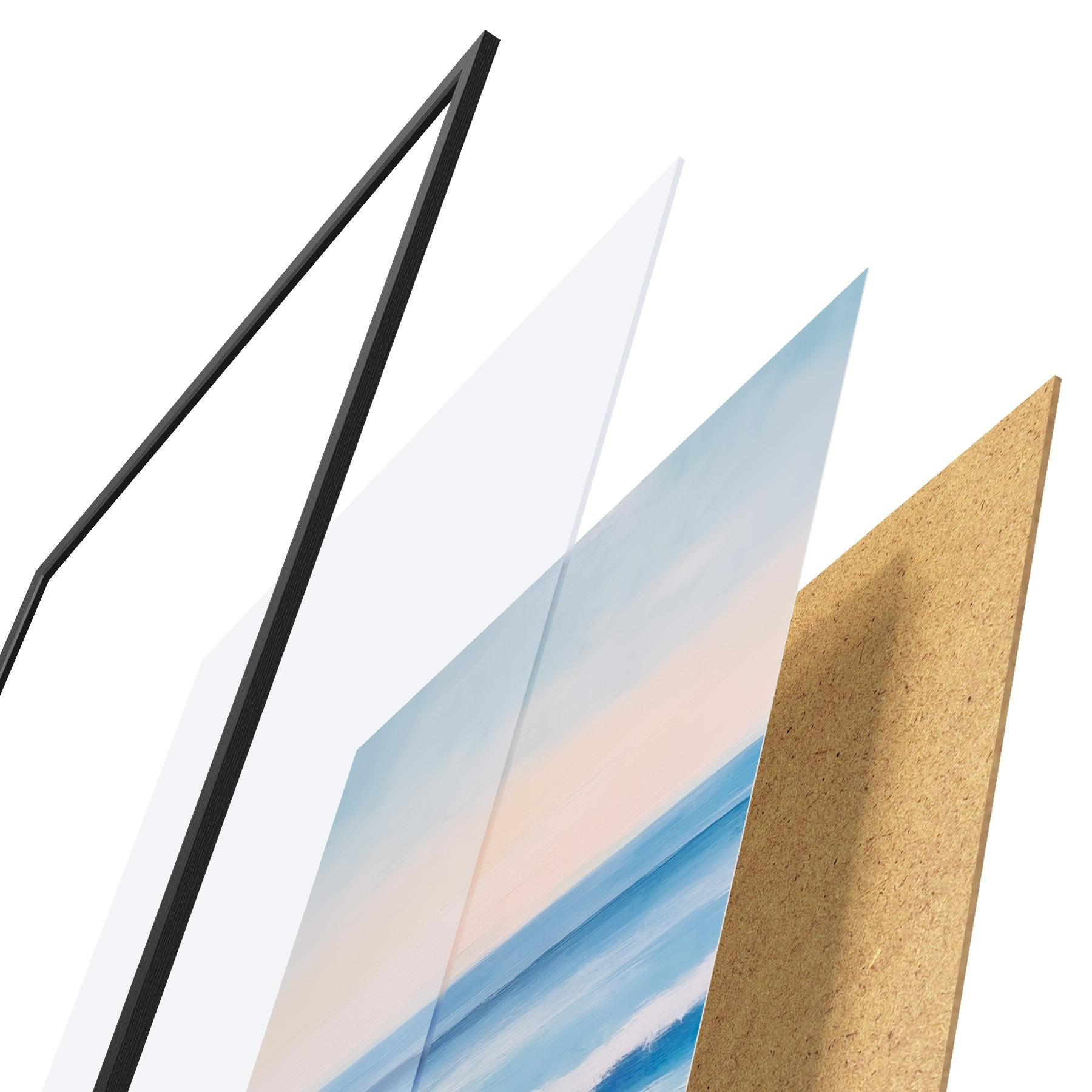 Il poster è composto da cornice, plexiglass, immagine stampata e supporto in truciolato. Il poster può essere immediatamente appeso alla parete grazie ai supporti sul retro.