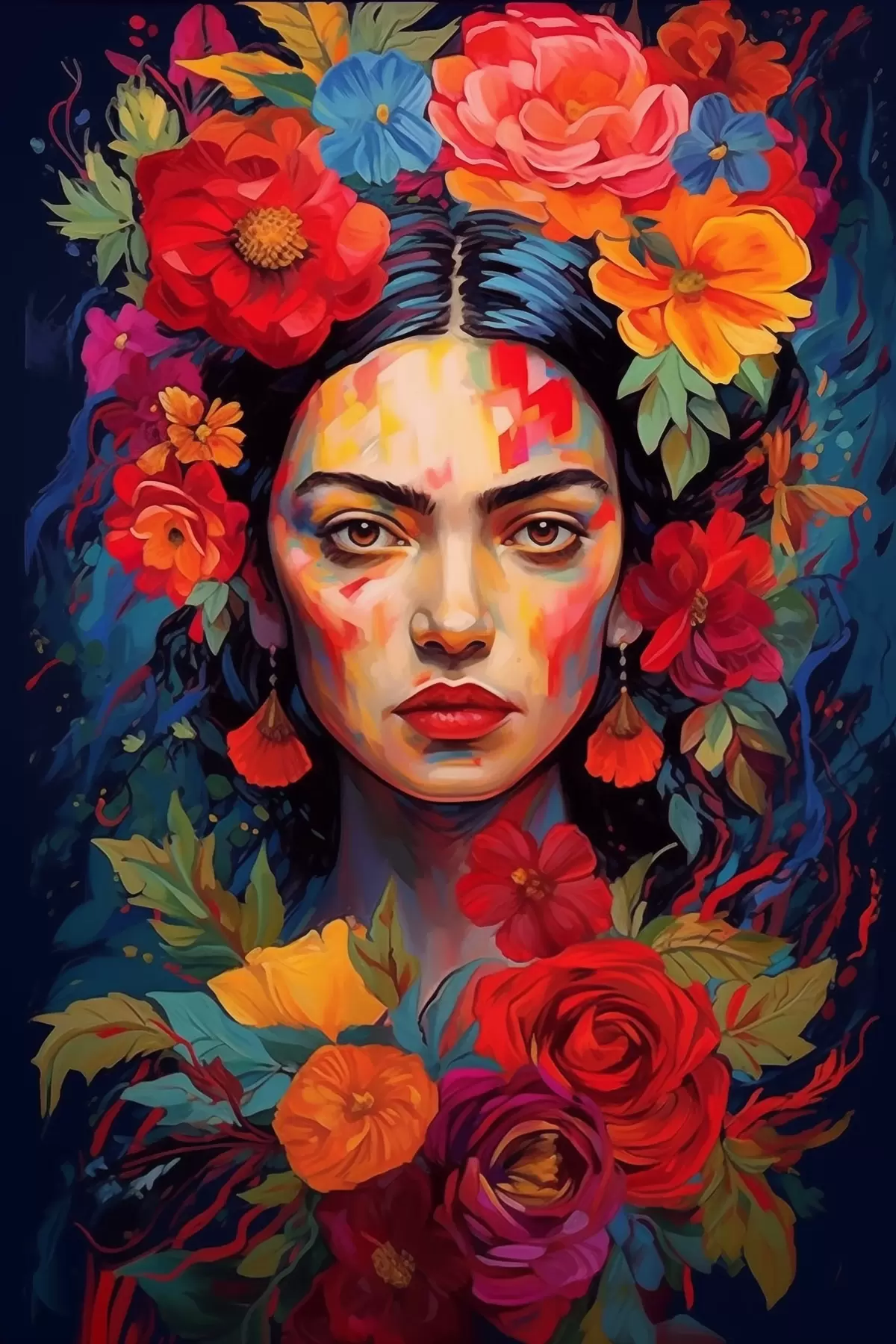 Poster Ritratto di donna con cornice floreale in stile astratto luminoso f42653