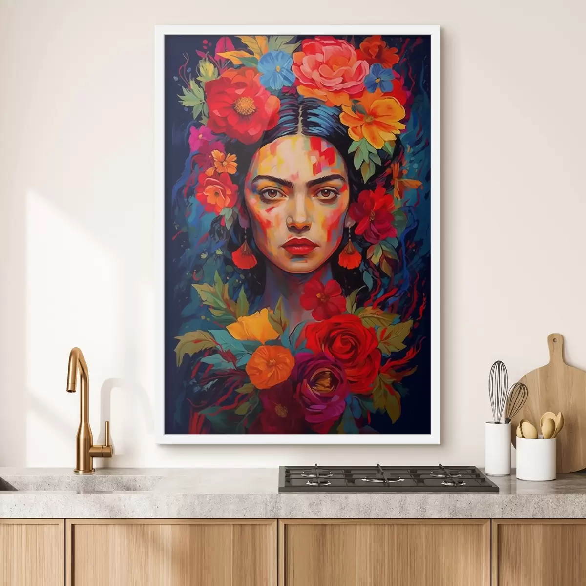 Poster Ritratto di donna con cornice floreale in stile astratto luminoso Nr f42653
