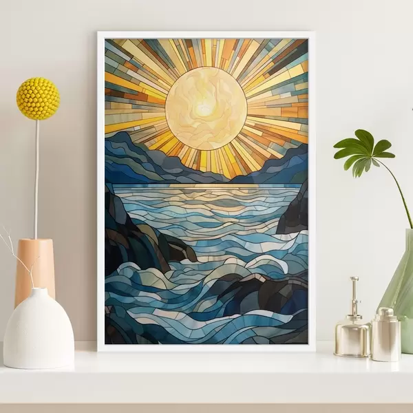 Poster Sole e onde nello stile delle vetrate artistiche Nr f42654
