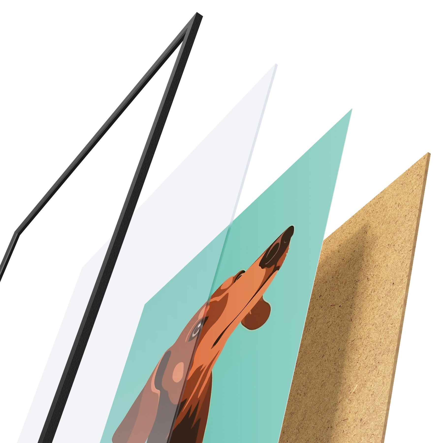 Il poster è composto da cornice, plexiglass, immagine stampata e supporto in truciolato. Il poster può essere immediatamente appeso alla parete grazie ai supporti sul retro.