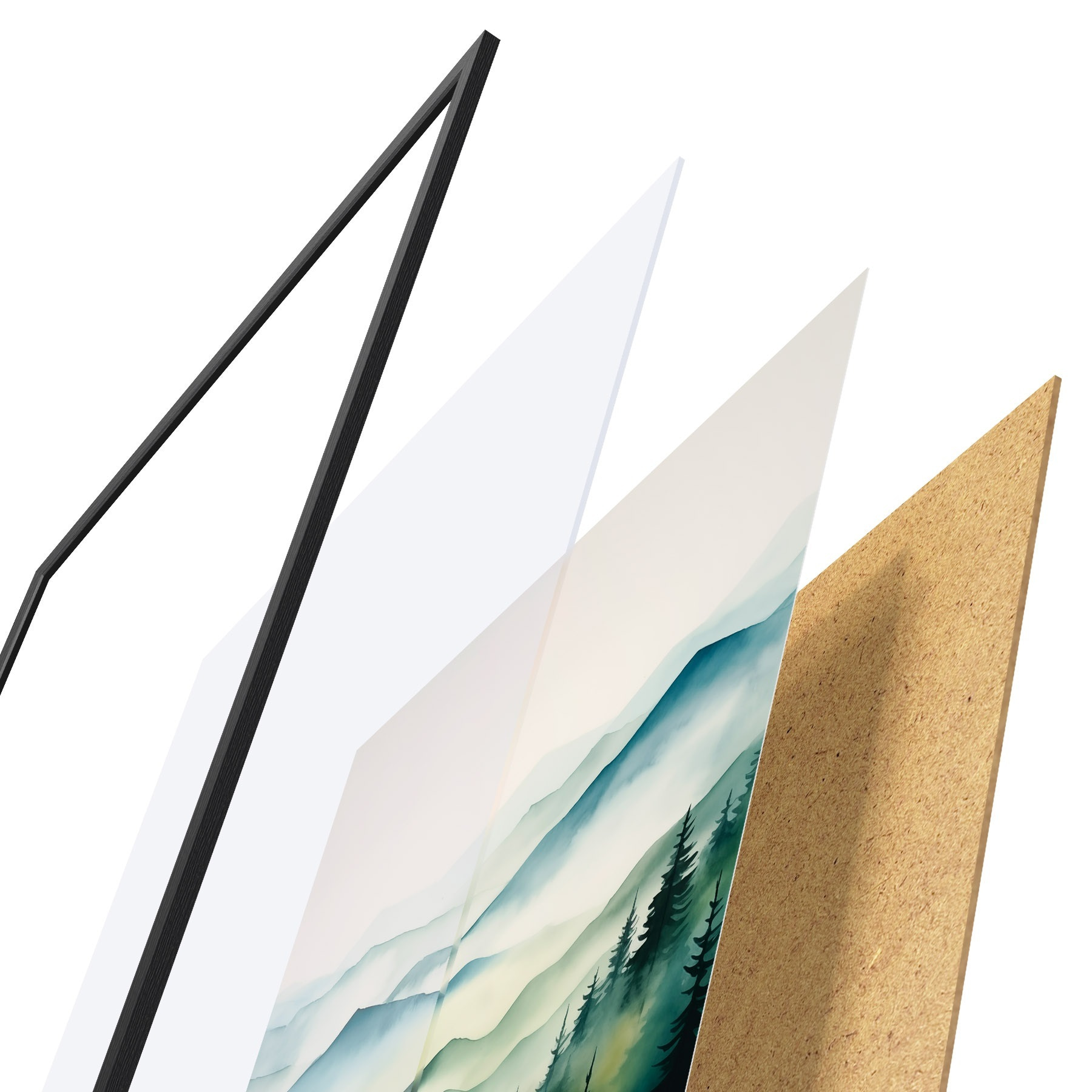 Il poster è composto da cornice, plexiglass, immagine stampata e supporto in truciolato. Il poster può essere immediatamente appeso alla parete grazie ai supporti sul retro.