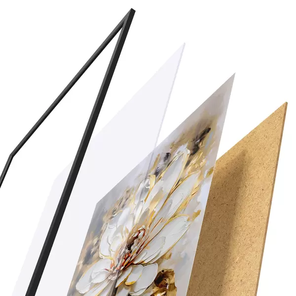 Il poster è composto da cornice, plexiglass, immagine stampata e supporto in truciolato. Il poster può essere immediatamente appeso alla parete grazie ai supporti sul retro.