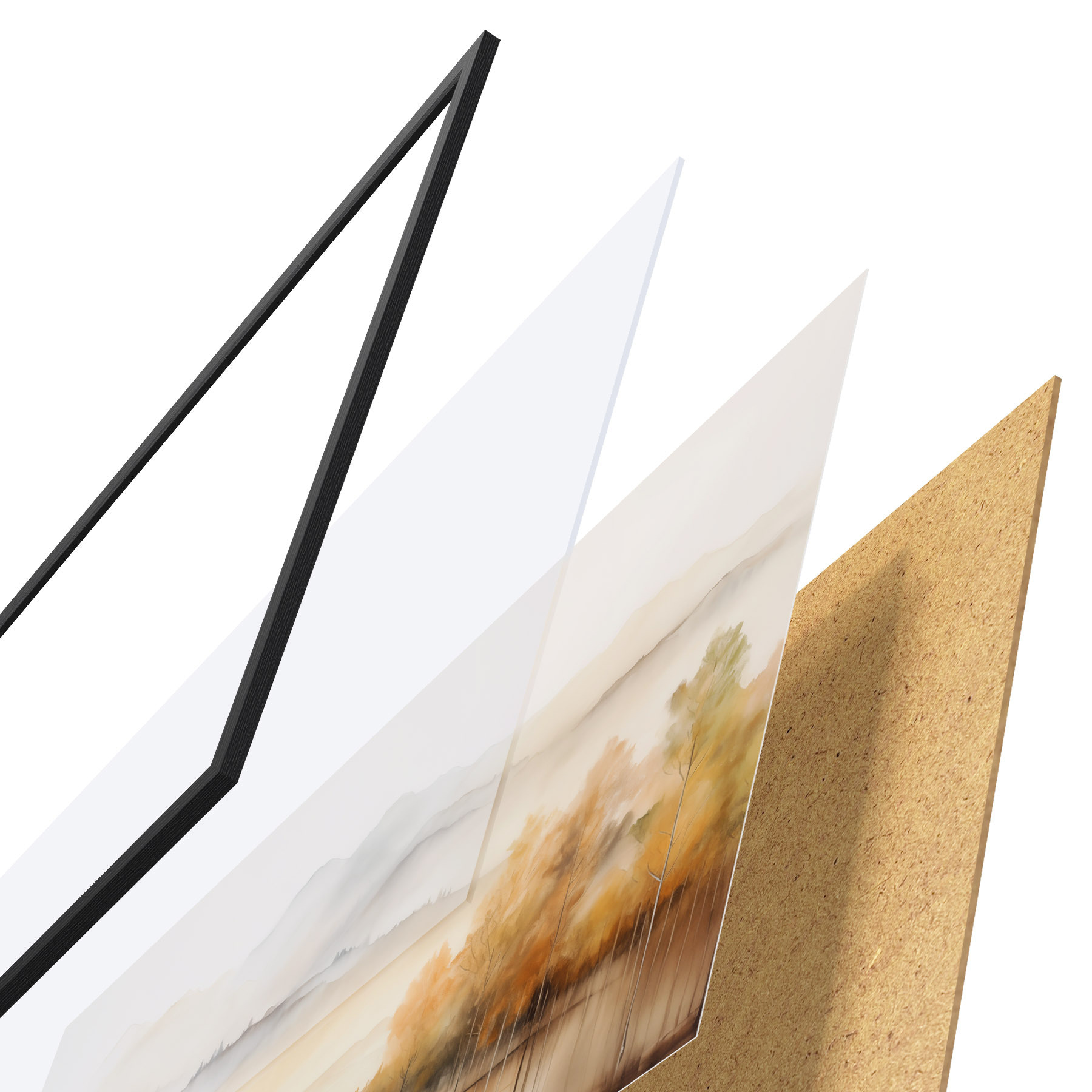 Il poster è composto da cornice, plexiglass, immagine stampata e supporto in truciolato. Il poster può essere immediatamente appeso alla parete grazie ai supporti sul retro.