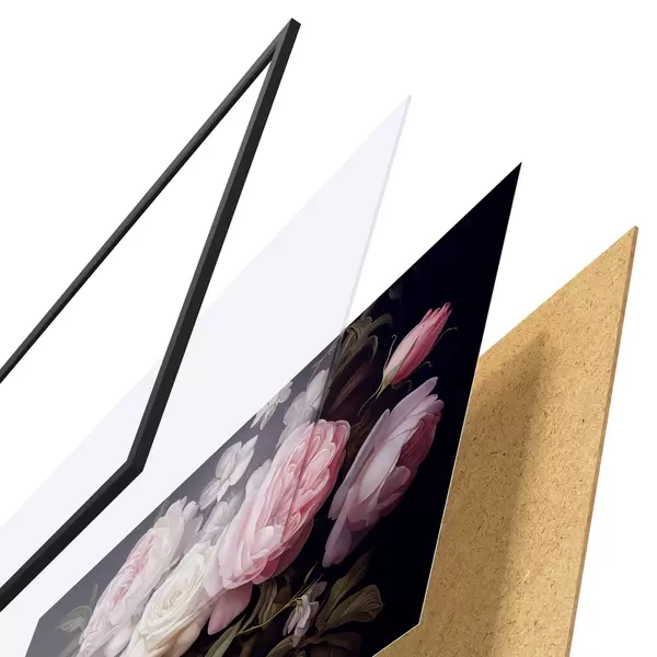 Il poster è composto da cornice, plexiglass, immagine stampata e supporto in truciolato. Il poster può essere immediatamente appeso alla parete grazie ai supporti sul retro.