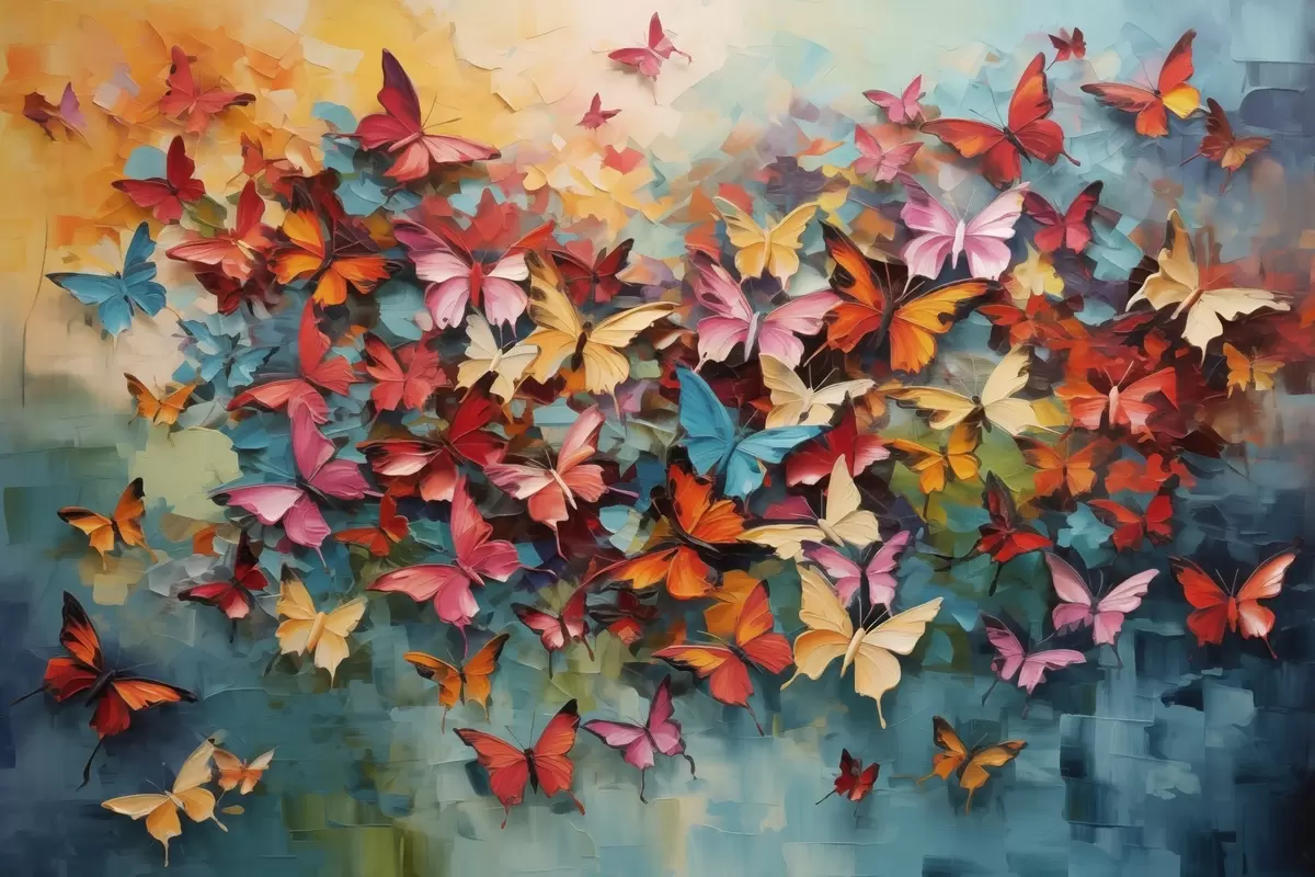 Poster Una vivace serie di farfalle in vari colori a imitazione della pittura a olio Nr f42728