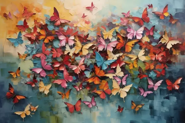 Poster Una vivace serie di farfalle in vari colori a imitazione della pittura a olio Nr f42728