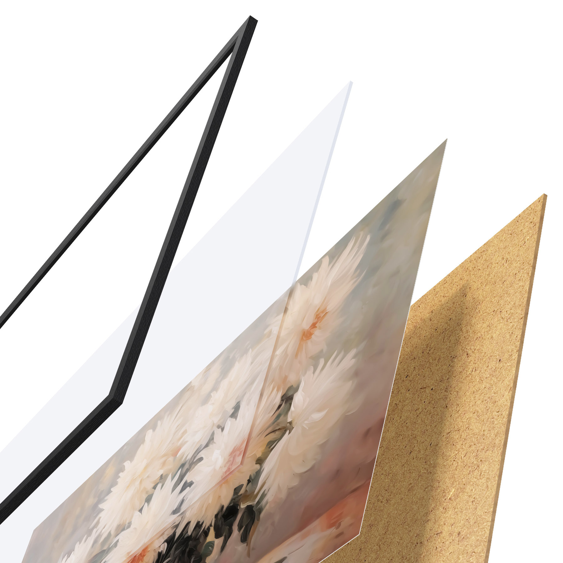 Il poster è composto da cornice, plexiglass, immagine stampata e supporto in truciolato. Il poster può essere immediatamente appeso alla parete grazie ai supporti sul retro.