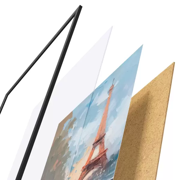 Il poster è composto da cornice, plexiglass, immagine stampata e supporto in truciolato. Il poster può essere immediatamente appeso alla parete grazie ai supporti sul retro.