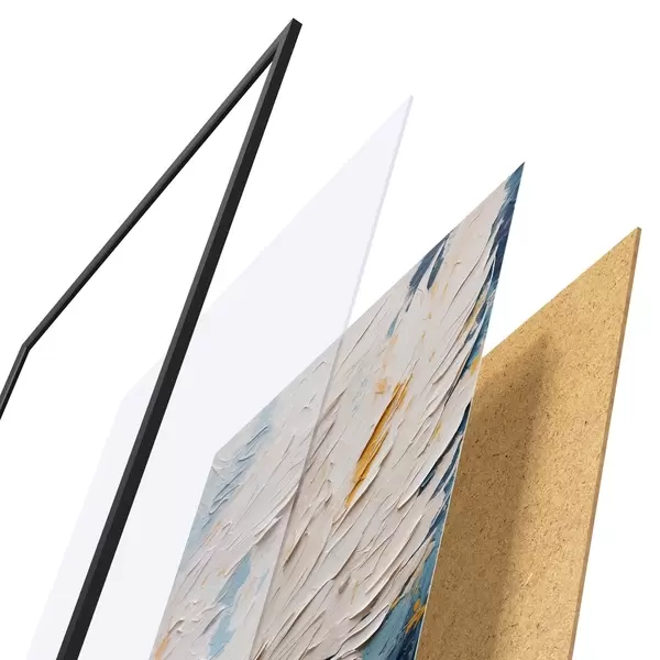 Il poster è composto da cornice, plexiglass, immagine stampata e supporto in truciolato. Il poster può essere immediatamente appeso alla parete grazie ai supporti sul retro.
