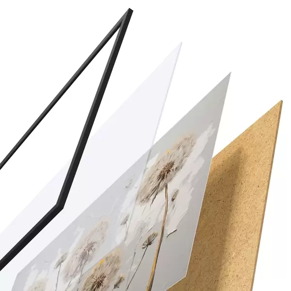 Il poster è composto da cornice, plexiglass, immagine stampata e supporto in truciolato. Il poster può essere immediatamente appeso alla parete grazie ai supporti sul retro.