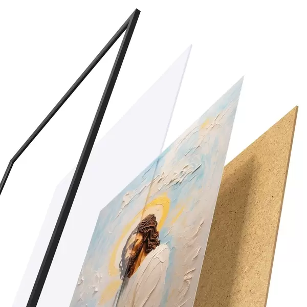 Il poster è composto da cornice, plexiglass, immagine stampata e supporto in truciolato. Il poster può essere immediatamente appeso alla parete grazie ai supporti sul retro.