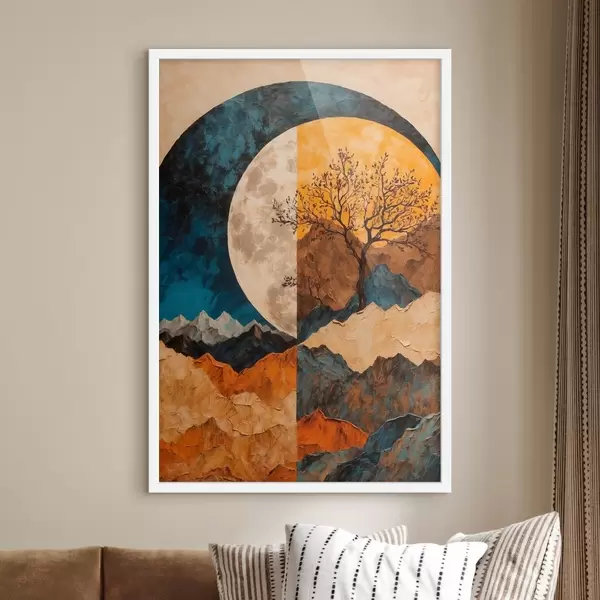 Poster Montagna multicolore su sfondo lunare trovata in stile pittura acifca Nr f42770