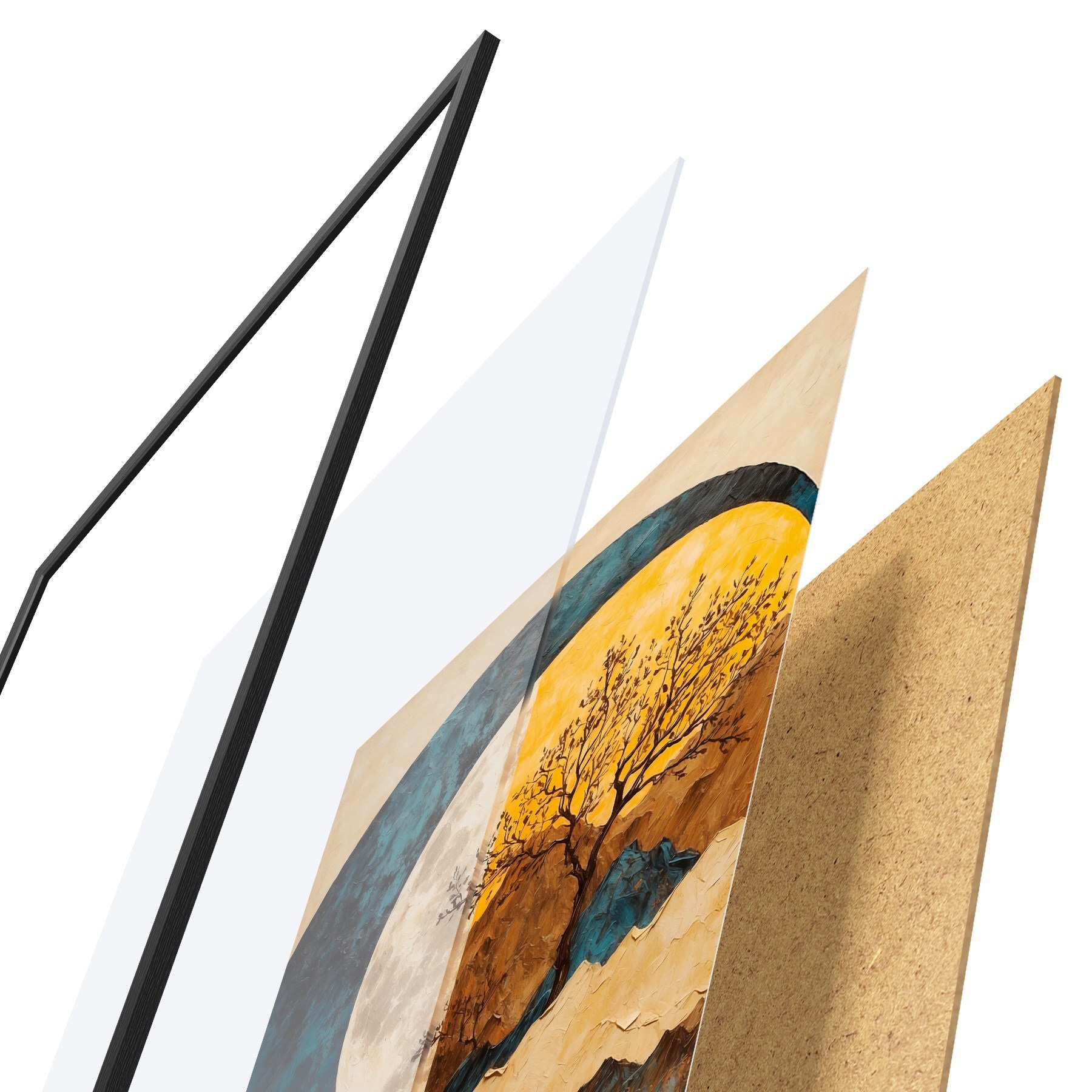 Il poster è composto da cornice, plexiglass, immagine stampata e supporto in truciolato. Il poster può essere immediatamente appeso alla parete grazie ai supporti sul retro.