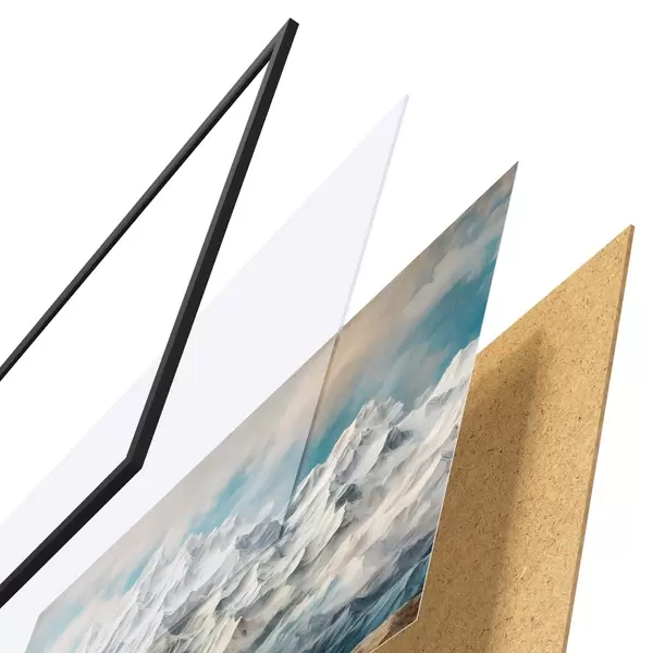Il poster è composto da cornice, plexiglass, immagine stampata e supporto in truciolato. Il poster può essere immediatamente appeso alla parete grazie ai supporti sul retro.