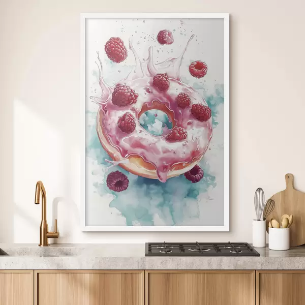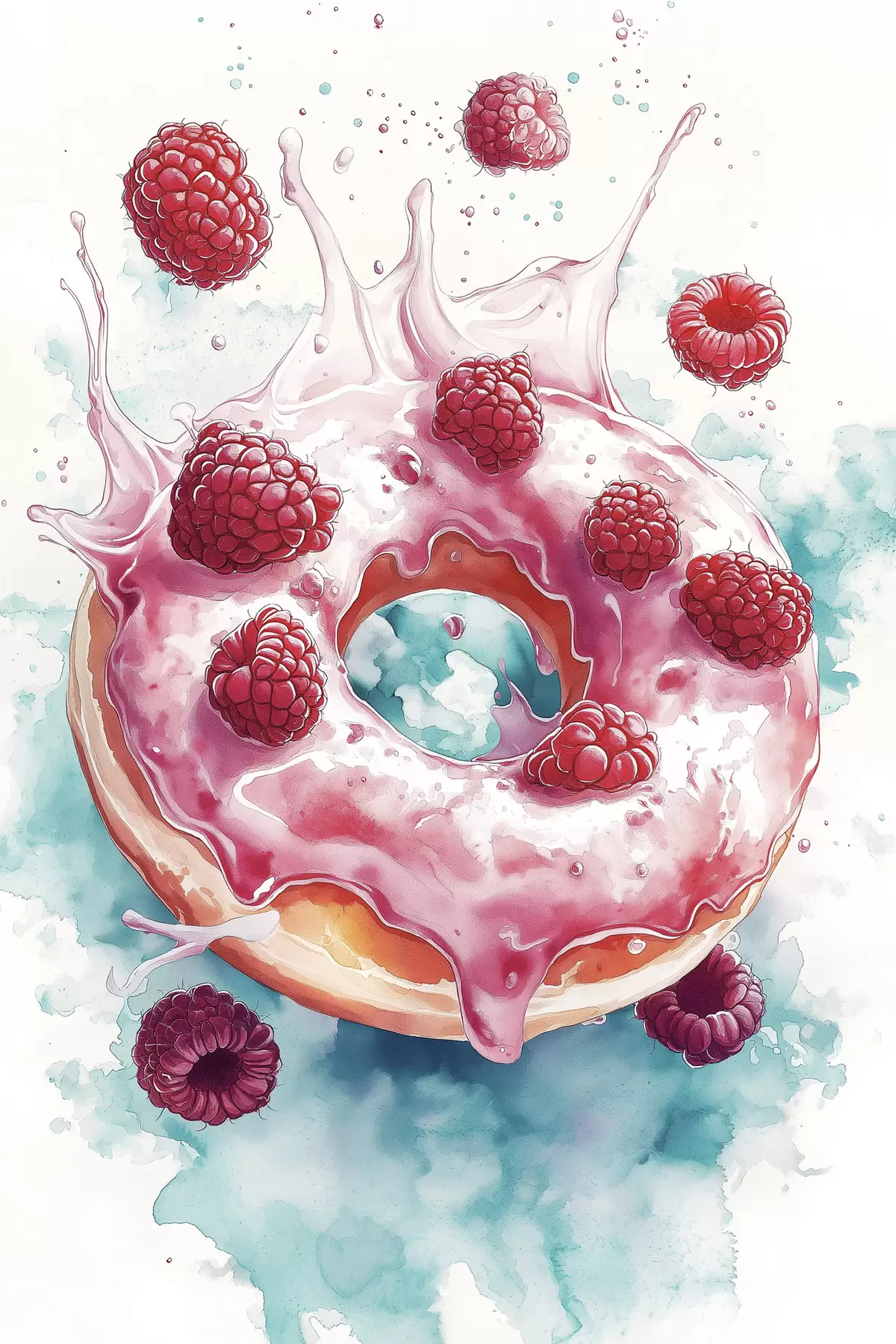 Poster Ciambella acquerellata con lamponi, colori rosa e blu Nr f42787