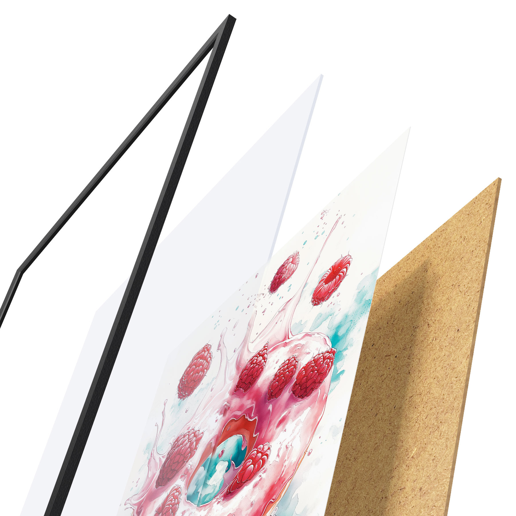 Poster Ciambella acquerellata con lamponi, colori rosa e blu f42787