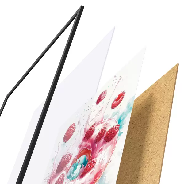 Il poster è composto da cornice, plexiglass, immagine stampata e supporto in truciolato. Il poster può essere immediatamente appeso alla parete grazie ai supporti sul retro.