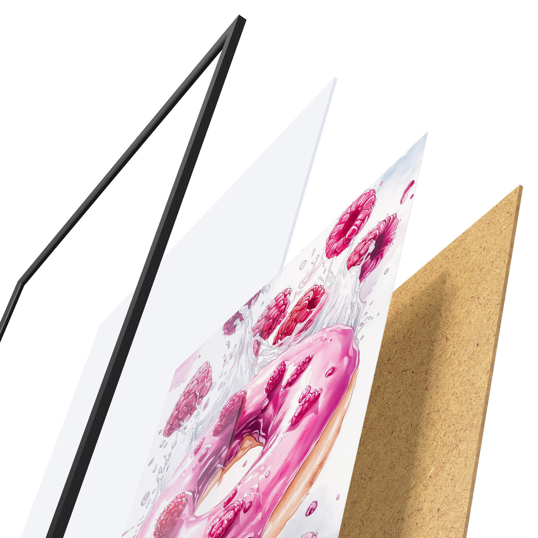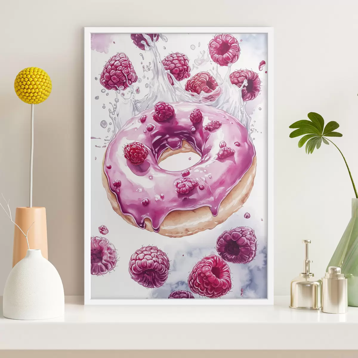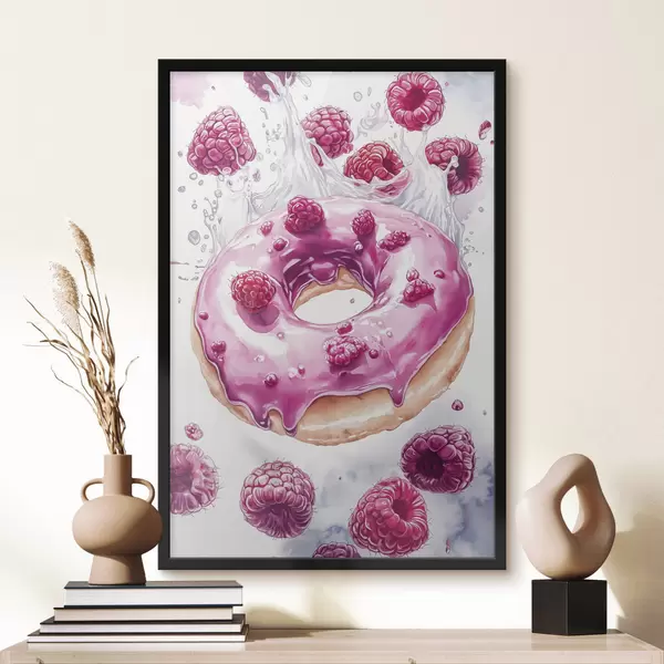 Poster Ciambella con lamponi con glassa rosa, delizioso dessert, stile acquerello Nr f42789