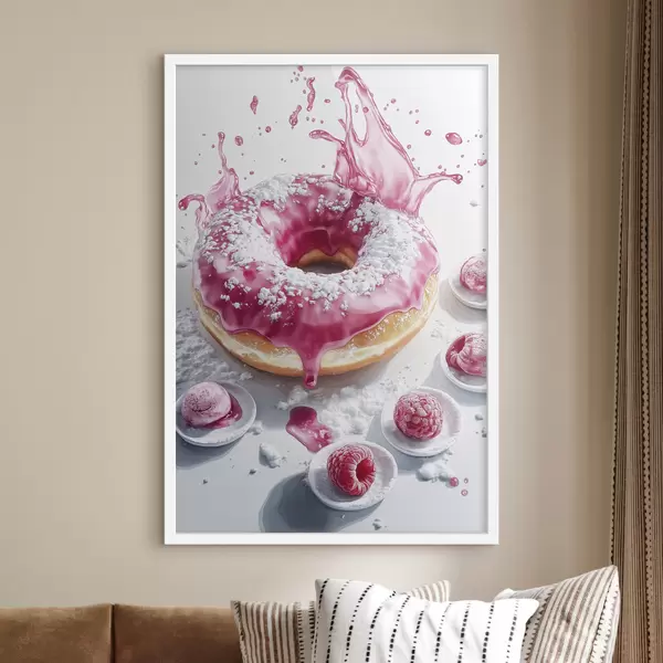 Poster Ciambella realistica con frutti di bosco e glassa rosa f42790