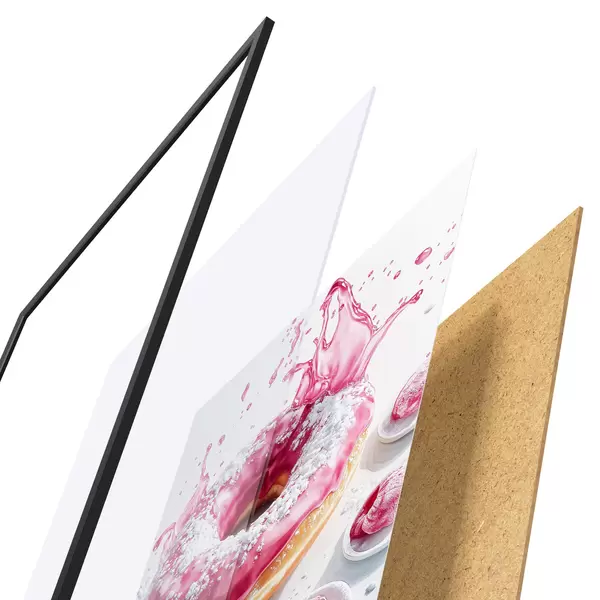 Il poster è composto da cornice, plexiglass, immagine stampata e supporto in truciolato. Il poster può essere immediatamente appeso alla parete grazie ai supporti sul retro.