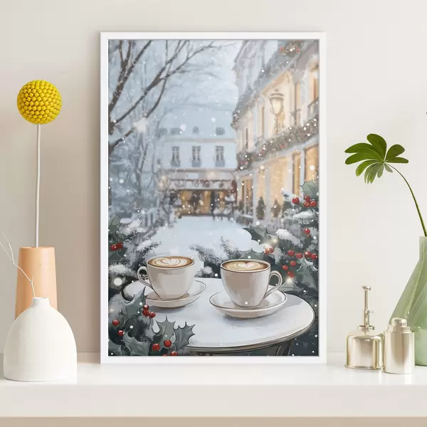 Poster Tazze di caffè nell'accogliente caffè, estetica invernale, stile boho Nr f42797