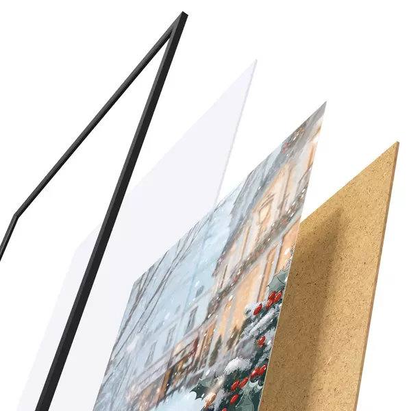 Il poster è composto da cornice, plexiglass, immagine stampata e supporto in truciolato. Il poster può essere immediatamente appeso alla parete grazie ai supporti sul retro.