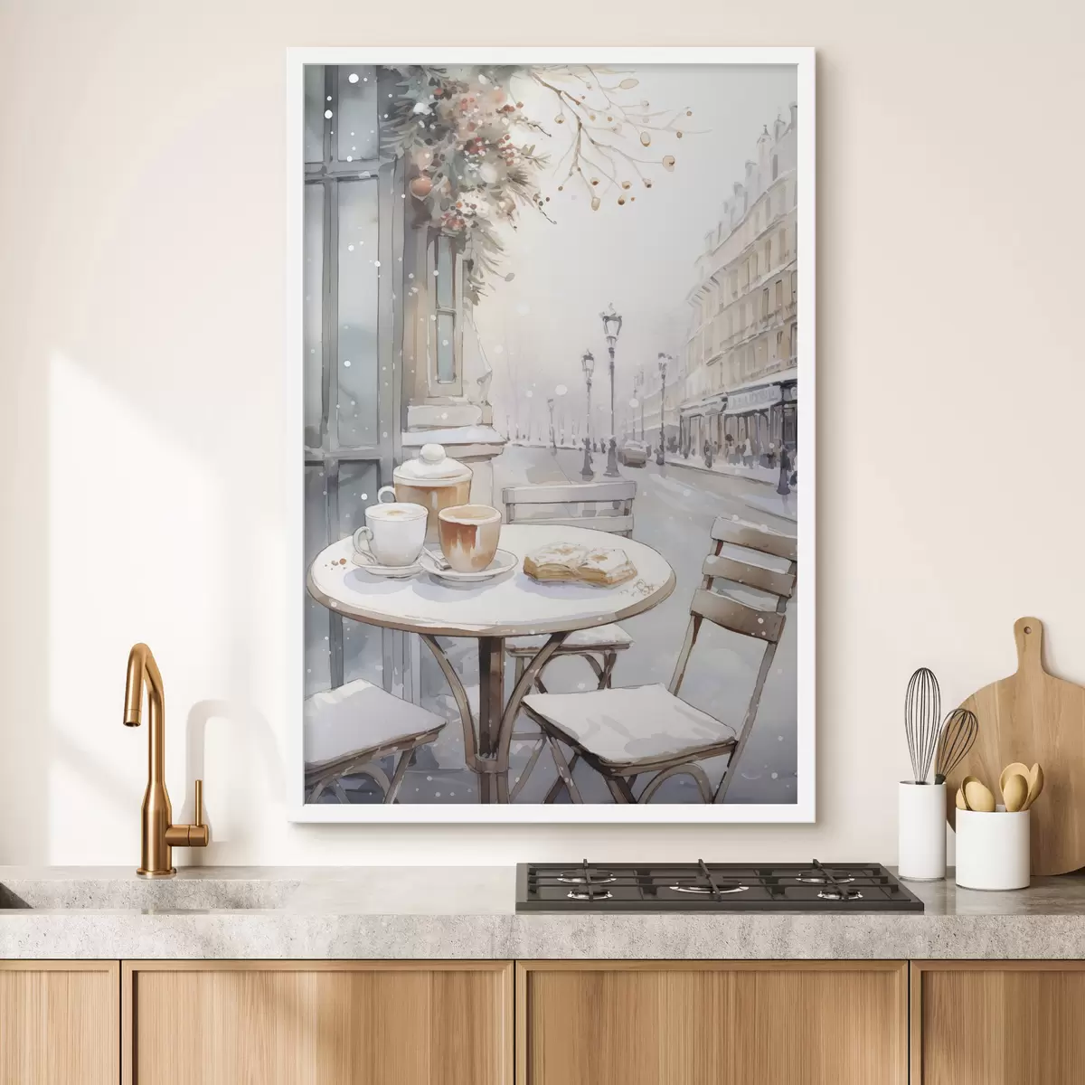 Poster Caffè di strada estetico, Francia, panetteria fresca, disegno in stile acquerello Nr f42798