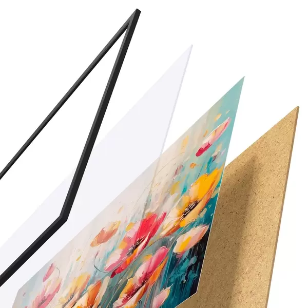 Il poster è composto da cornice, plexiglass, immagine stampata e supporto in truciolato. Il poster può essere immediatamente appeso alla parete grazie ai supporti sul retro.