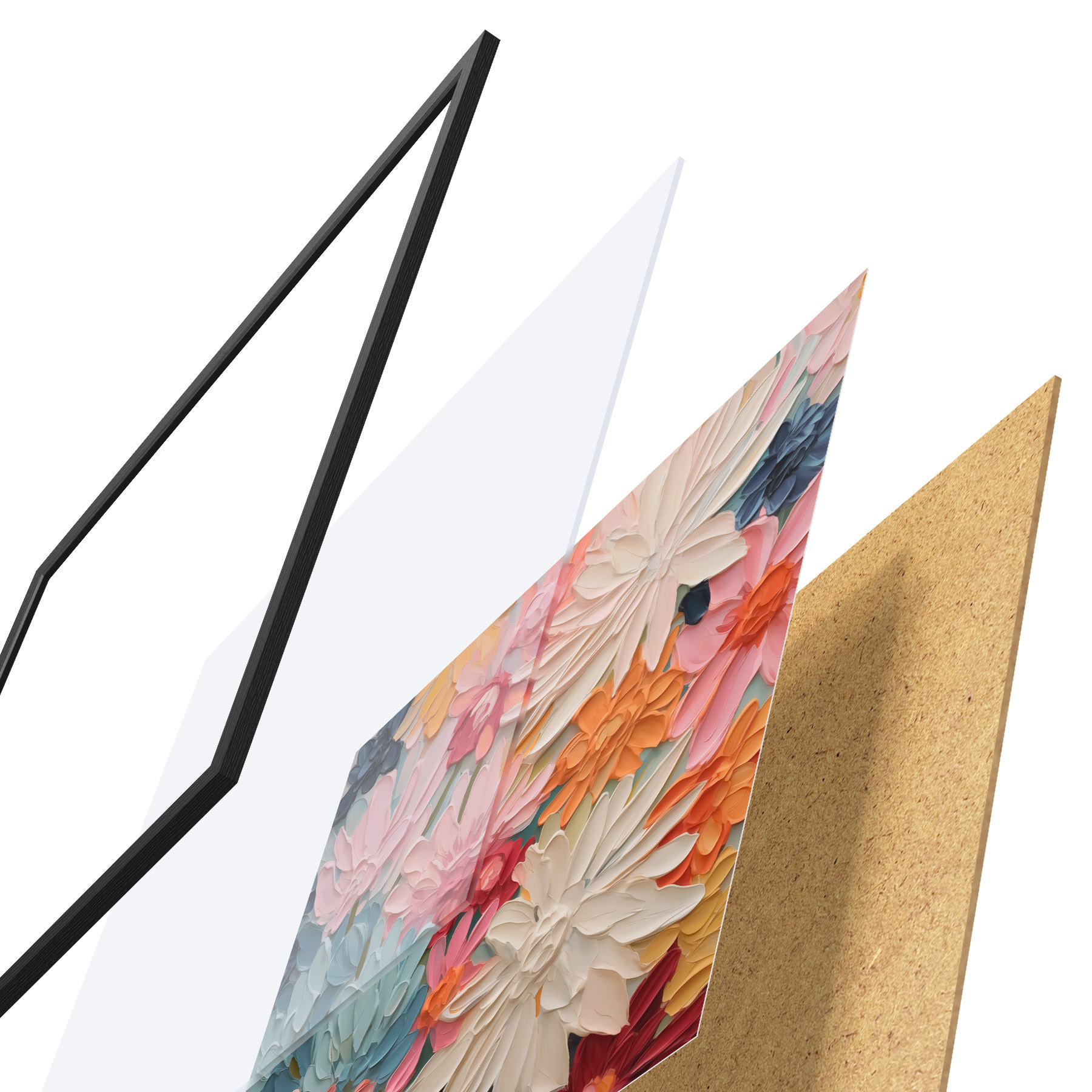 Il poster è composto da cornice, plexiglass, immagine stampata e supporto in truciolato. Il poster può essere immediatamente appeso alla parete grazie ai supporti sul retro.