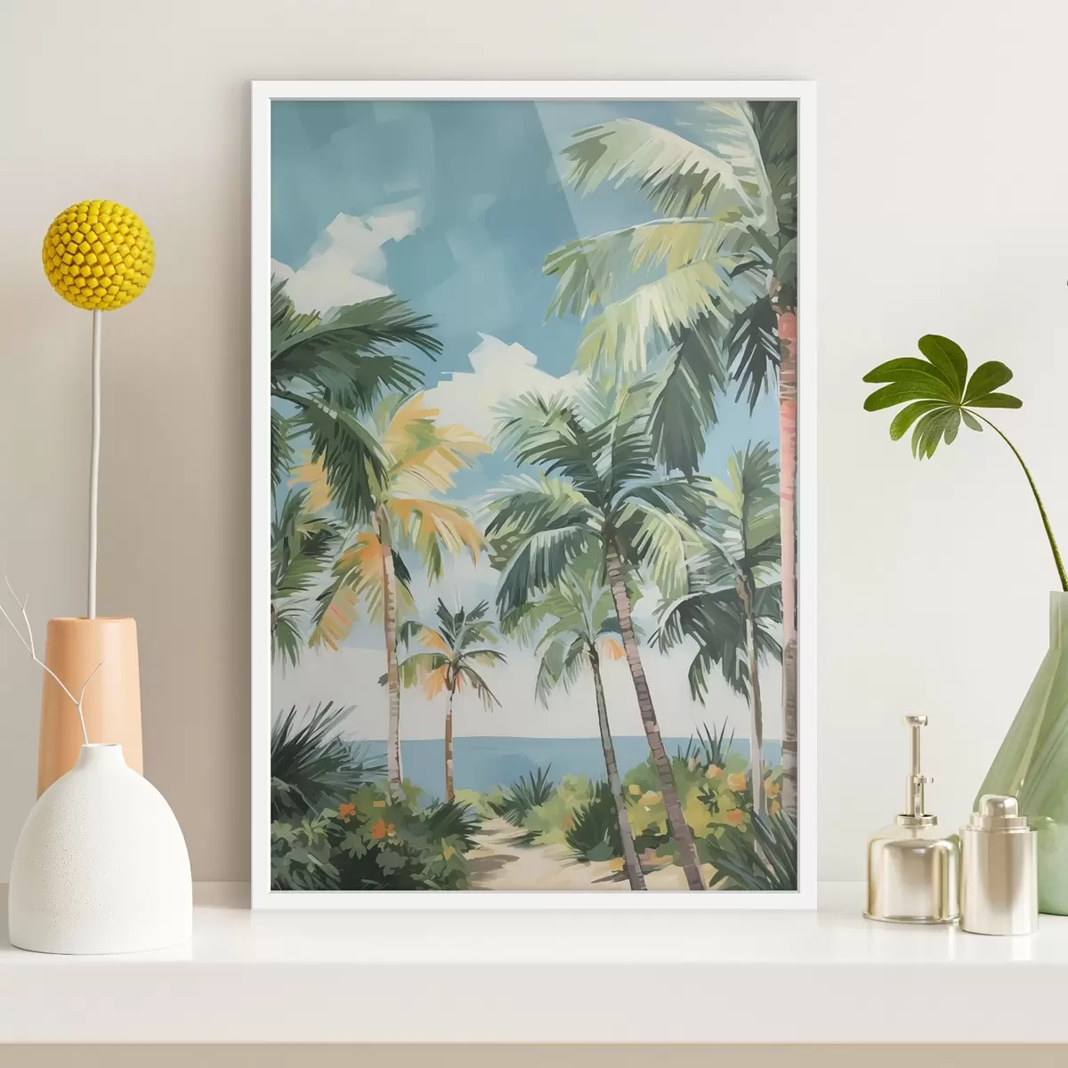 Poster Palmeto in riva al mare imitazione della pittura f42840