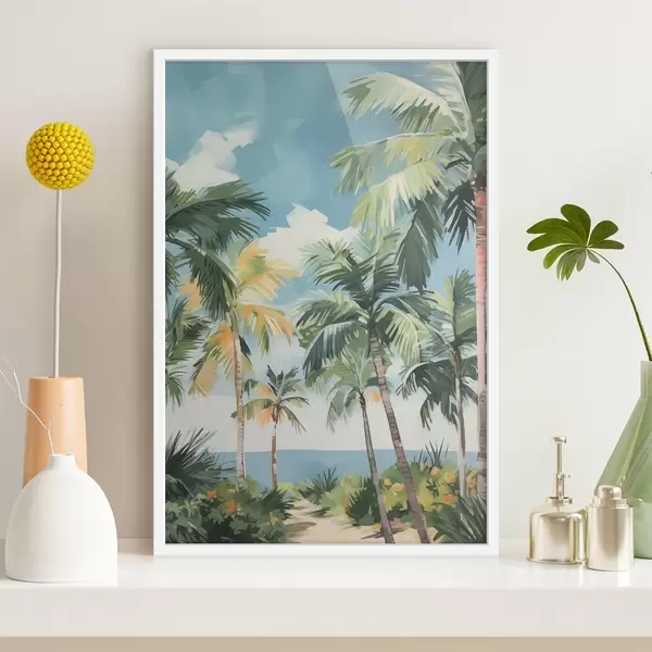 Poster Palmeto in riva al mare imitazione della pittura Nr f42840
