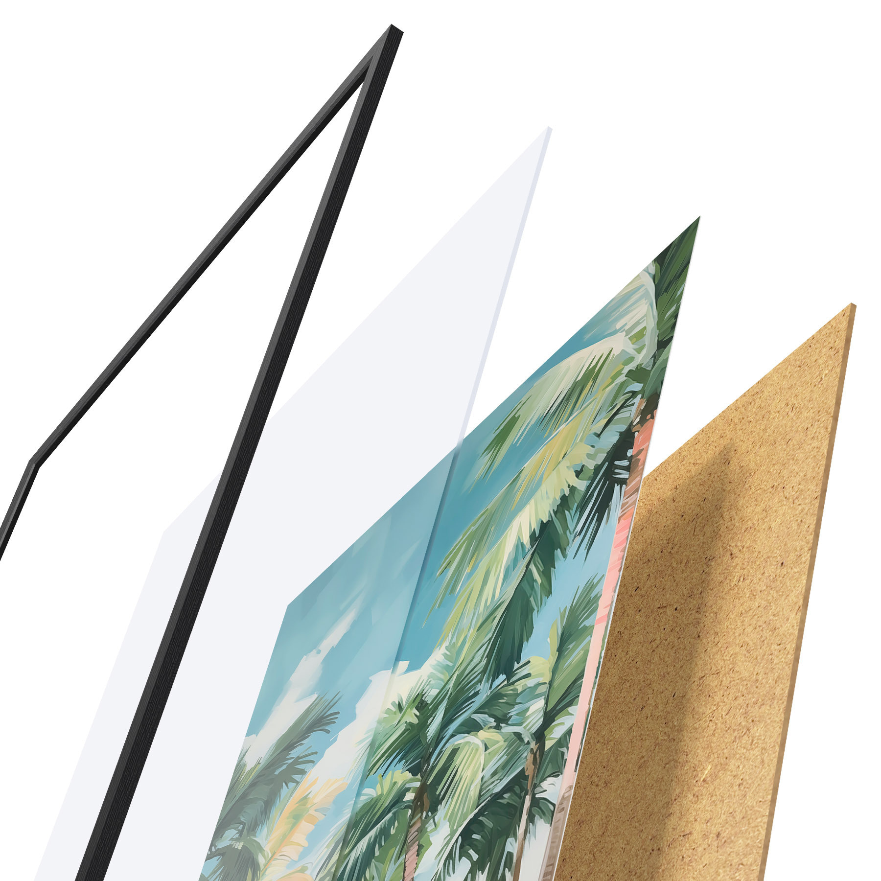 Il poster è composto da cornice, plexiglass, immagine stampata e supporto in truciolato. Il poster può essere immediatamente appeso alla parete grazie ai supporti sul retro.