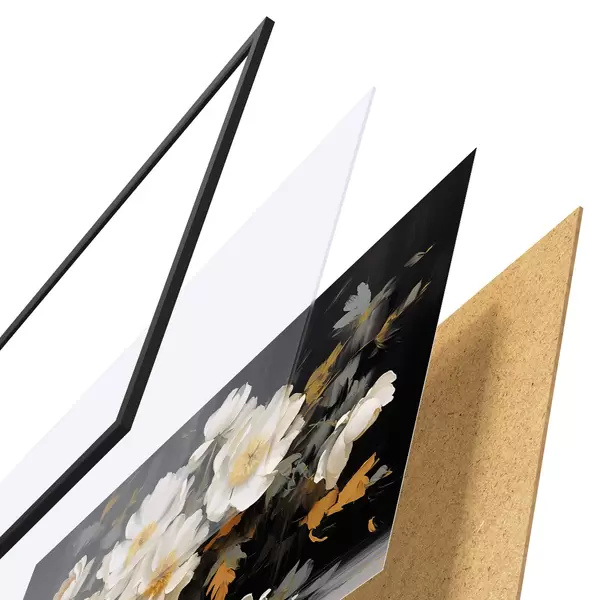 Il poster è composto da cornice, plexiglass, immagine stampata e supporto in truciolato. Il poster può essere immediatamente appeso alla parete grazie ai supporti sul retro.