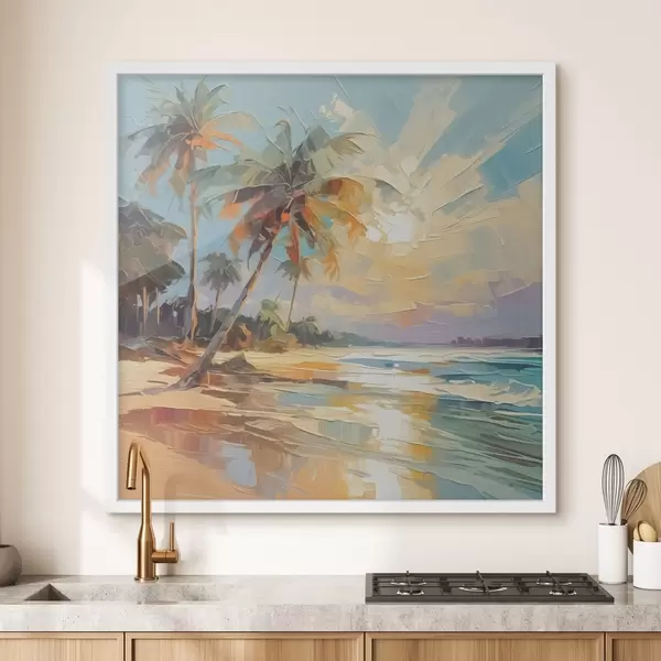 Poster Palme in riva al mare imitazione di pittura Nr f42897