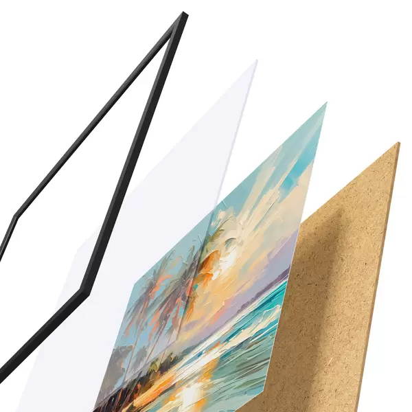 Il poster è composto da cornice, plexiglass, immagine stampata e supporto in truciolato. Il poster può essere immediatamente appeso alla parete grazie ai supporti sul retro.