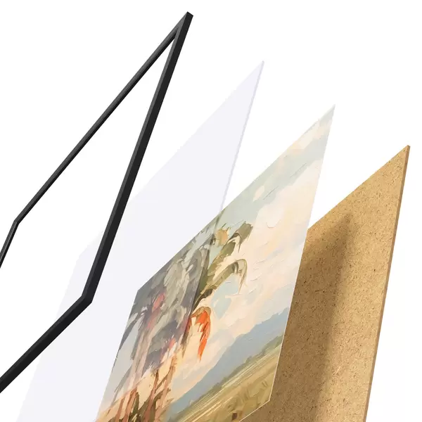 Il poster è composto da cornice, plexiglass, immagine stampata e supporto in truciolato. Il poster può essere immediatamente appeso alla parete grazie ai supporti sul retro.