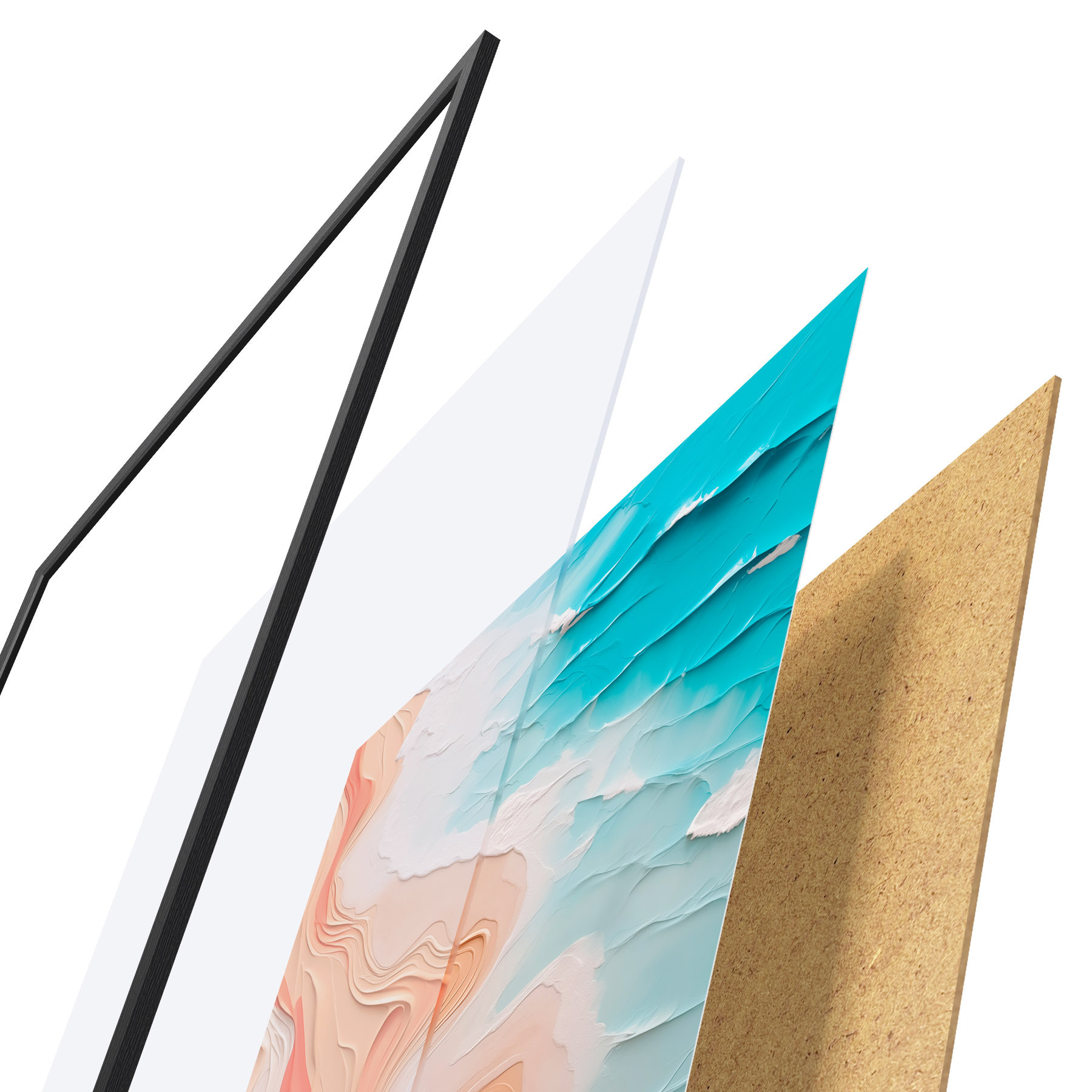 Il poster è composto da cornice, plexiglass, immagine stampata e supporto in truciolato. Il poster può essere immediatamente appeso alla parete grazie ai supporti sul retro.