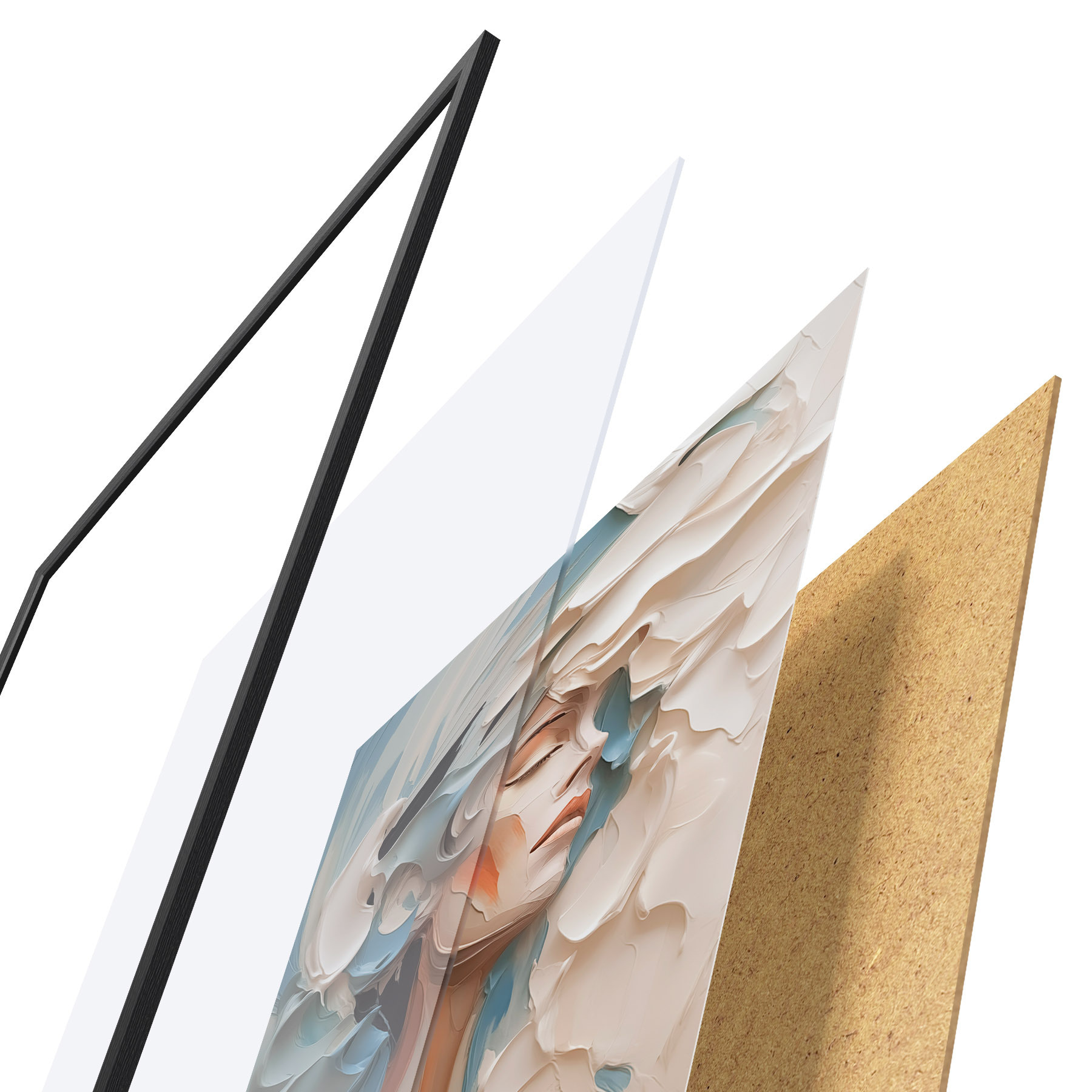 Il poster è composto da cornice, plexiglass, immagine stampata e supporto in truciolato. Il poster può essere immediatamente appeso alla parete grazie ai supporti sul retro.