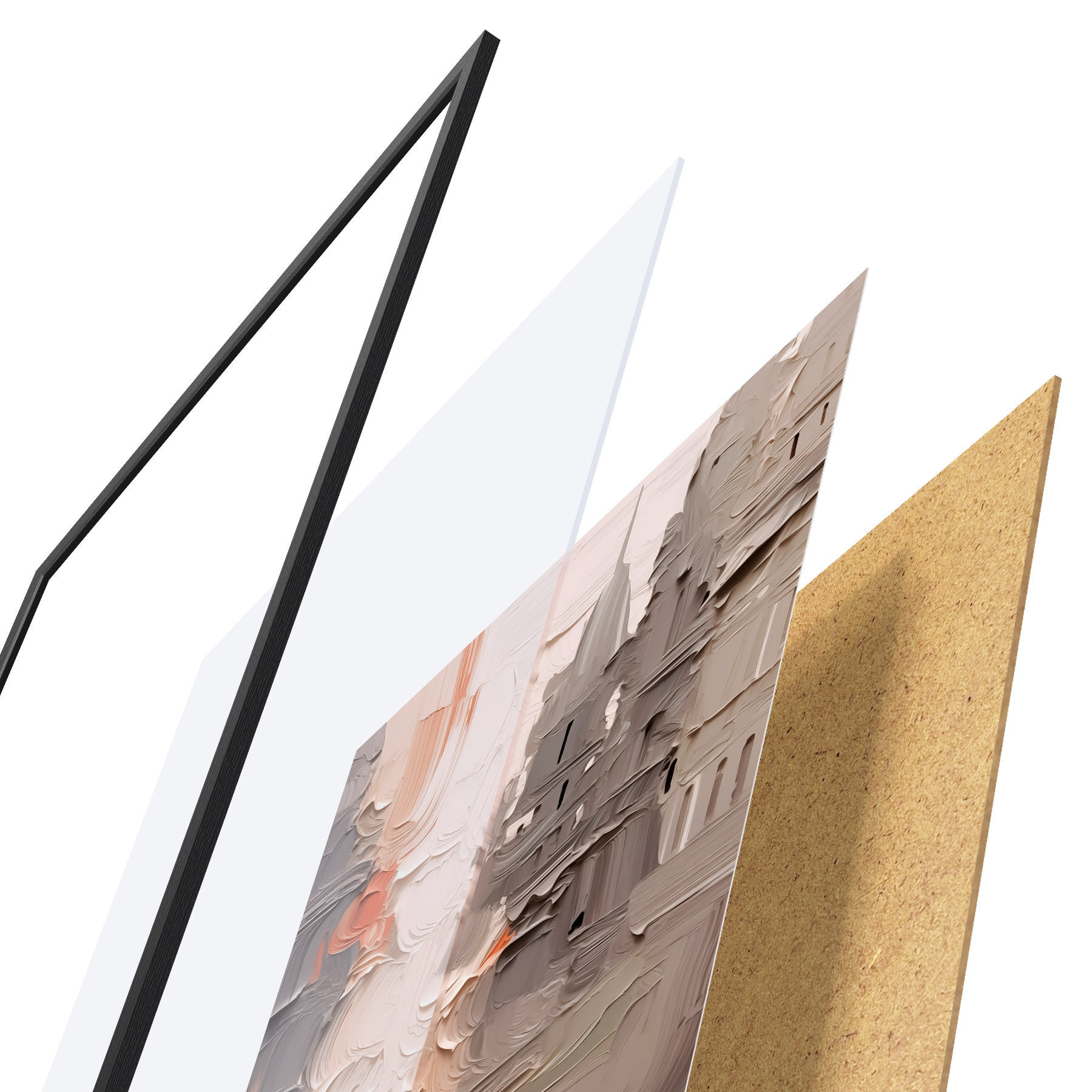 Il poster è composto da cornice, plexiglass, immagine stampata e supporto in truciolato. Il poster può essere immediatamente appeso alla parete grazie ai supporti sul retro.