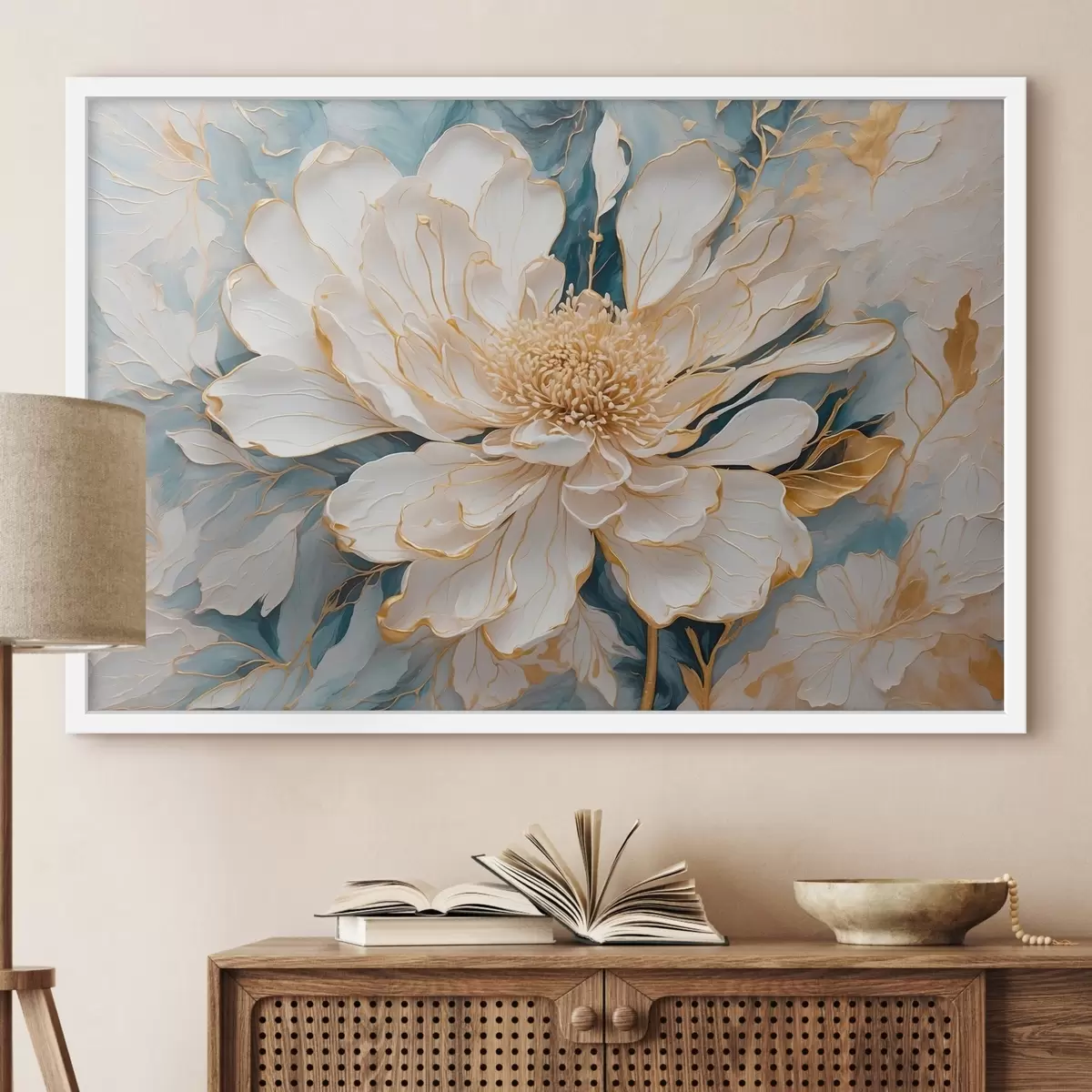 Poster Fiore bianco con contorni su sfondo blu e bianco f42923
