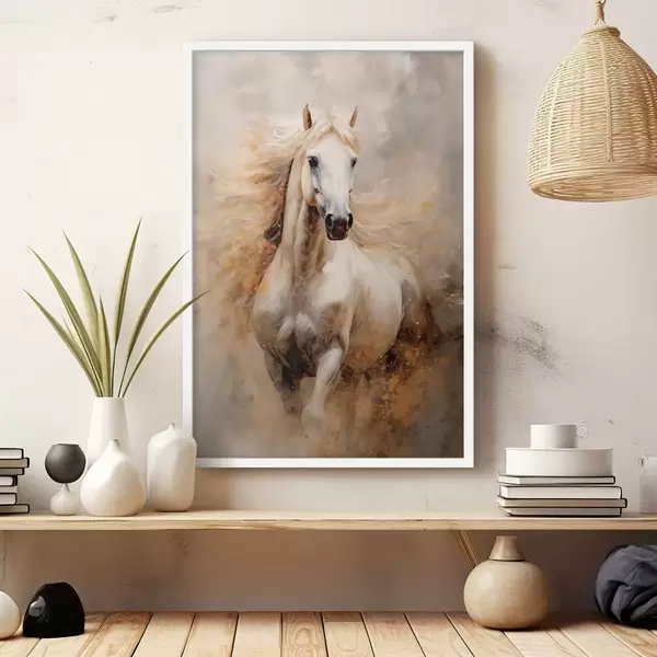 Poster Ritratto pittoresco di un cavallo bianco in movimento Nr f42932