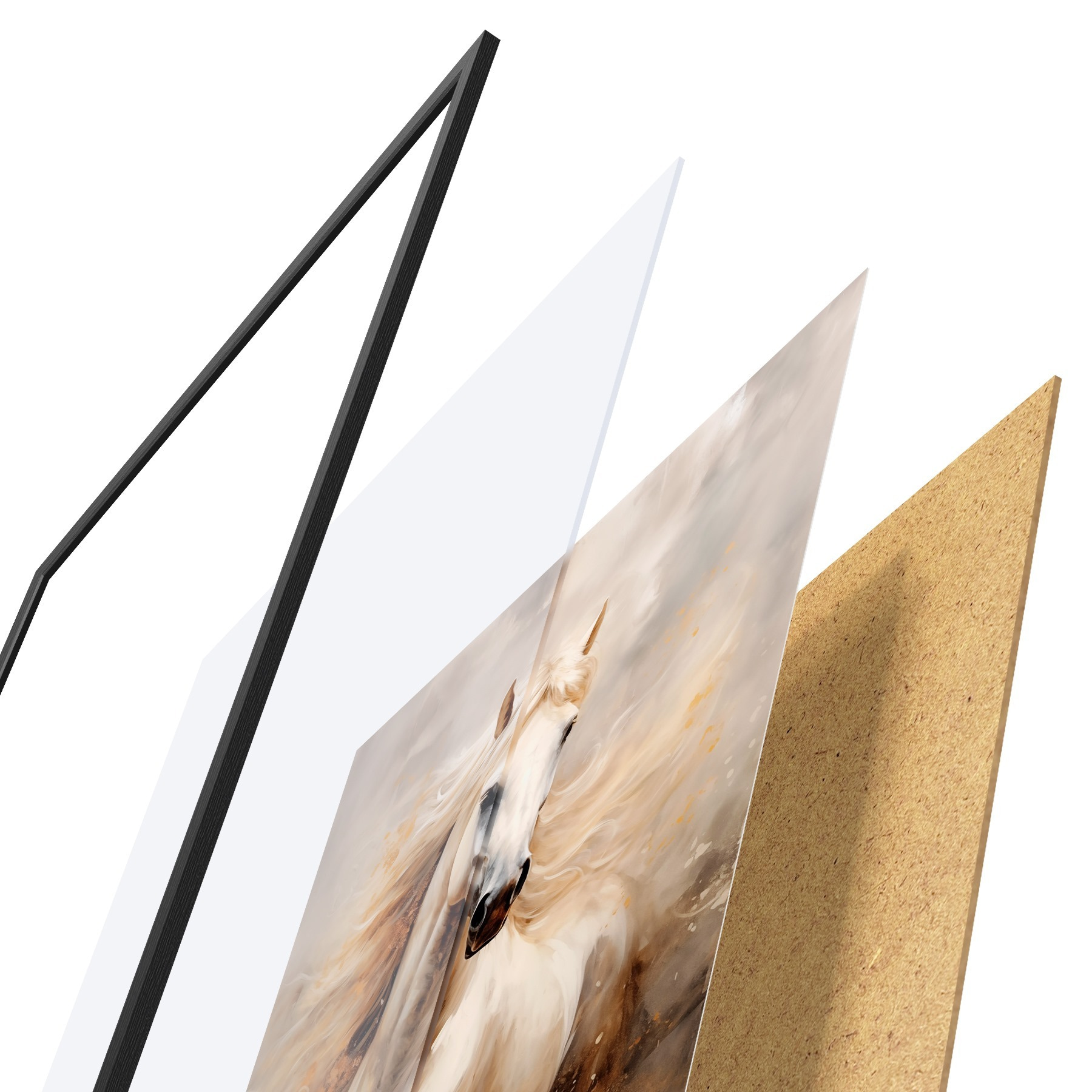 Il poster è composto da cornice, plexiglass, immagine stampata e supporto in truciolato. Il poster può essere immediatamente appeso alla parete grazie ai supporti sul retro.