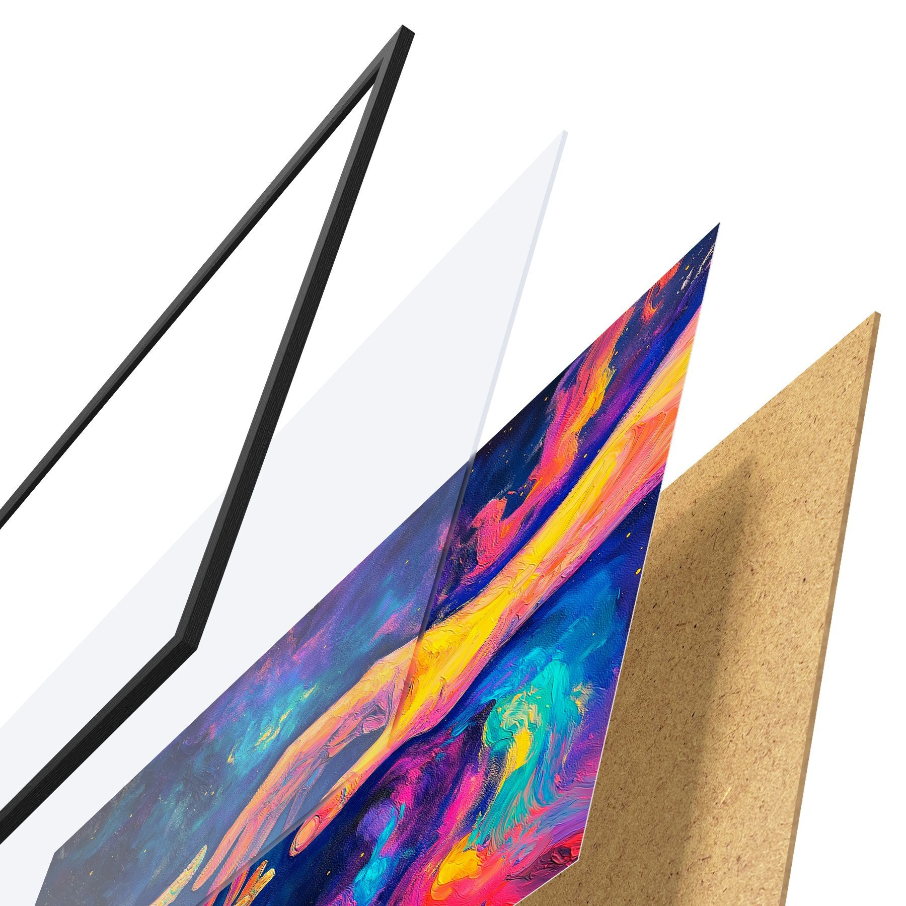 Il poster è composto da cornice, plexiglass, immagine stampata e supporto in truciolato. Il poster può essere immediatamente appeso alla parete grazie ai supporti sul retro.