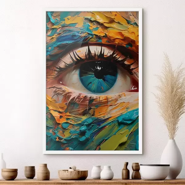 Poster Ritratto astratto di un occhio in colori vivaci, con un effetto di pittura strutturata f42938