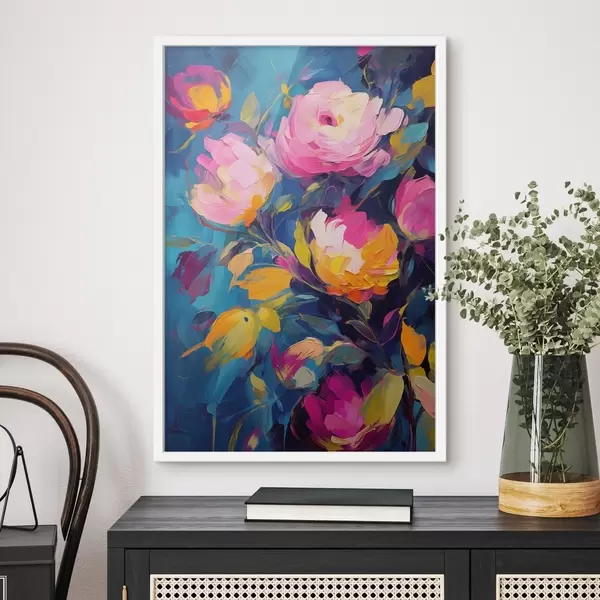 Poster Quadro astratto con fiori vivaci su sfondo blu Nr f42941