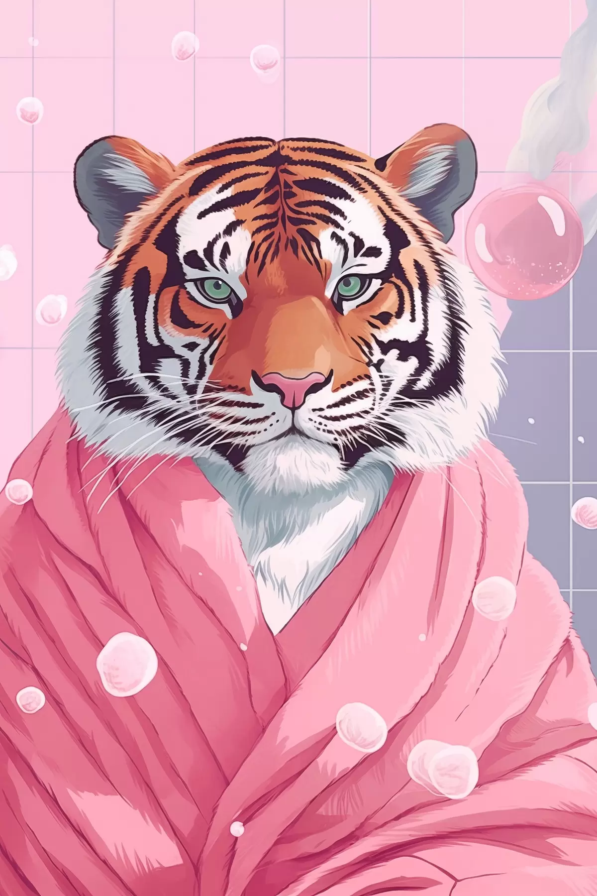 Poster Tigre in un asciugamano rosa Nr f42942