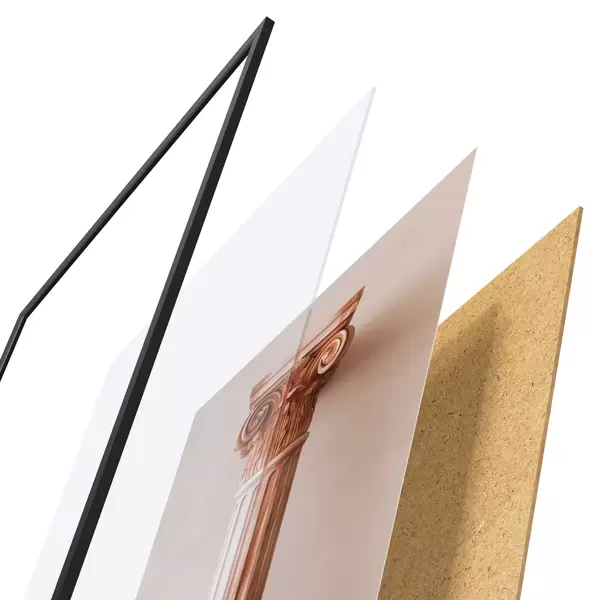 Il poster è composto da cornice, plexiglass, immagine stampata e supporto in truciolato. Il poster può essere immediatamente appeso alla parete grazie ai supporti sul retro.