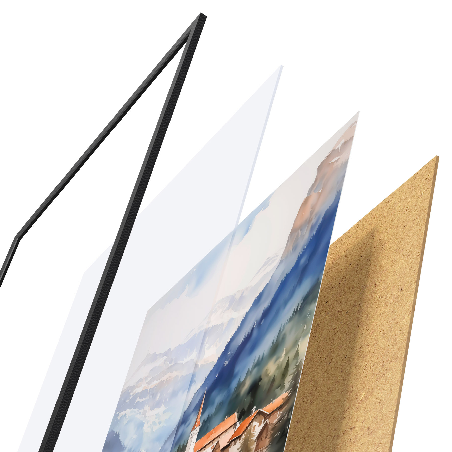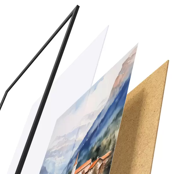 Il poster è composto da cornice, plexiglass, immagine stampata e supporto in truciolato. Il poster può essere immediatamente appeso alla parete grazie ai supporti sul retro.